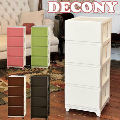 収納 デコニー チェスト 4段 収納ケース 衣装ケース おしゃれ 衣類収納 タンス プラスチック 引き出し 白 日本製 鏡面仕上げ クローゼット 衣類収納 送料無料